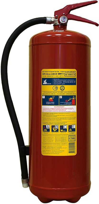 Условное обозначение огнетушителя при заказе Огнетушитель ОП-9(з) – АВСЕ «МИГ Е» (4А, 183В, С, Е)